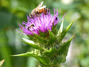 Die Mariendistel (Carduus marianus bzw. Silybum marianum) ist eine wichtige Leberpflanze. Neben der Artischocke ist sie vielleicht sogar die wichtigste Arzneipflanze bei Erkrankungen der Leber - auch in der chinesischen Medizin. Diese Wirkung ist auf ihren Inhaltsstoff Silymarin zurückzuführen. Die Mariendistel schützt jedoch nicht nur die Leber sondern auch die Magenschleimhaut. Sie stimuliert zudem das Immunsystem und wirkt antientzündlich und antibakteriell. Außerdem senkt sie den Blutzucker- und den Cholesterinspiegel. Aus Sicht der chinesischen Medizin tonisiert und bewegt sie das Leber-Qi, nährt das Leber-Yin und eliminiert pathogene Faktoren aus der Leber.